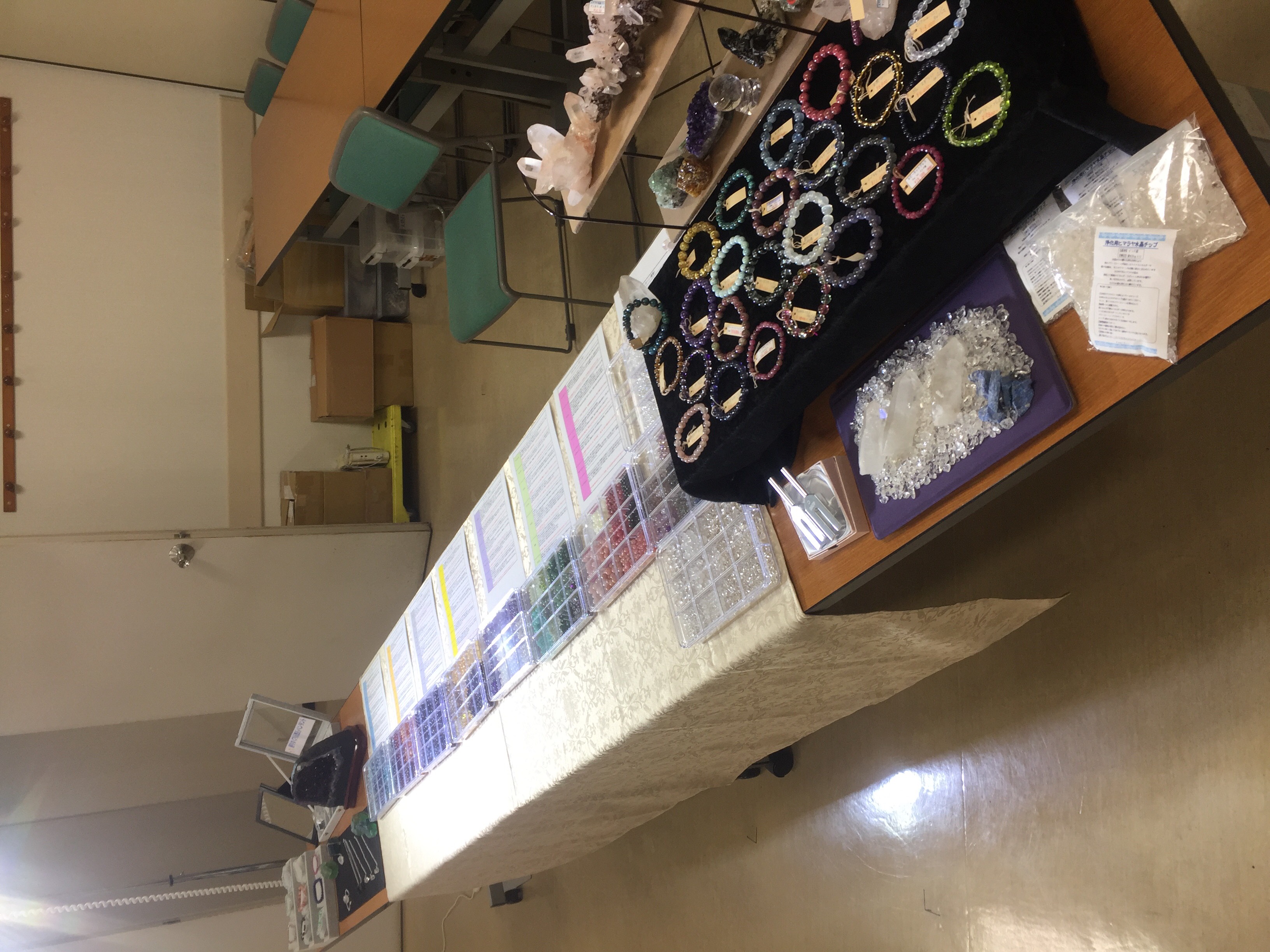 天然石のお店リアルアートが広島に来ています。 😆 ミネラルマルシェという鉱物を中心とした天然石を取り扱うお店さんが多数参加しているイベントに初参加しました。 😉 広島の天然石好きの方々に、天然石ブレスを身に着ける時は、相性が大切である。という当店のこだわりを伝えるために広島にやってきました。何人もの方にアクリス式相性チェックをさせていただき、皆様の驚きの声を聞くことが出来て、大変うれしかったです。 😀